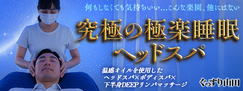 ハグ&ストレッチで疲れた心と体を癒し、温感オイルを使用したリンパマッサージで全身の毒素を排出し、体中が満たされた後に、最低30分以上のドライヘッドスパで絶頂睡眠に導きます。